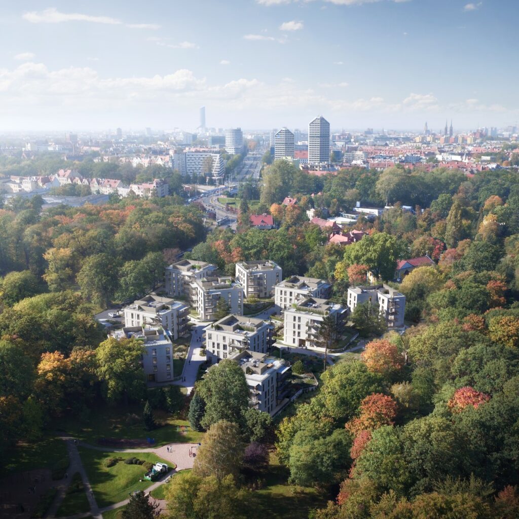 Tuż przy granicy Parku Szczytnickiego we Wrocławiu rośnie spore osiedle. W miejscu dawnego biurowca i warsztatów przy al. Różyckiego powstaje 10 budynków, a w nich aż 130 mieszkań.