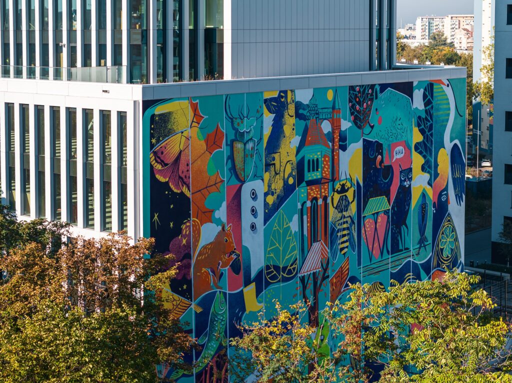 Około 720 metrów kwadratowych ma mural na elewacji wrocławskiego biurowca należącego do kompleksu Centrum Południe znajdującego się przy ul. Powstańców Śląskich, tuż obok Sky Tower.